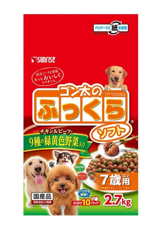 為您的愛犬提供 Sunrise Gon-ta 鬆軟狗糧,這是一款美味又營養的食品,旨在滿足牠們的飲食需求。這款狗糧採用優質成分製成,包括國產牛肉、雞肉和 9 種綠黃蔬菜,提供均衡的營養,有助於牠們的整體健康。鬆軟的質地使其易於咀嚼和消化,使其成為所有品種和年齡段狗狗的理想選擇。該產品採用方便的 2.7 公斤包裝,並分成 10 個小包,有助於保持新鮮度並方便餵食。無論您是想為您的狗狗提供美味又健康的膳食,還是只是想讓牠們享受特別的款待,Sunrise Gon-ta 鬆軟狗糧都是完美的選擇。